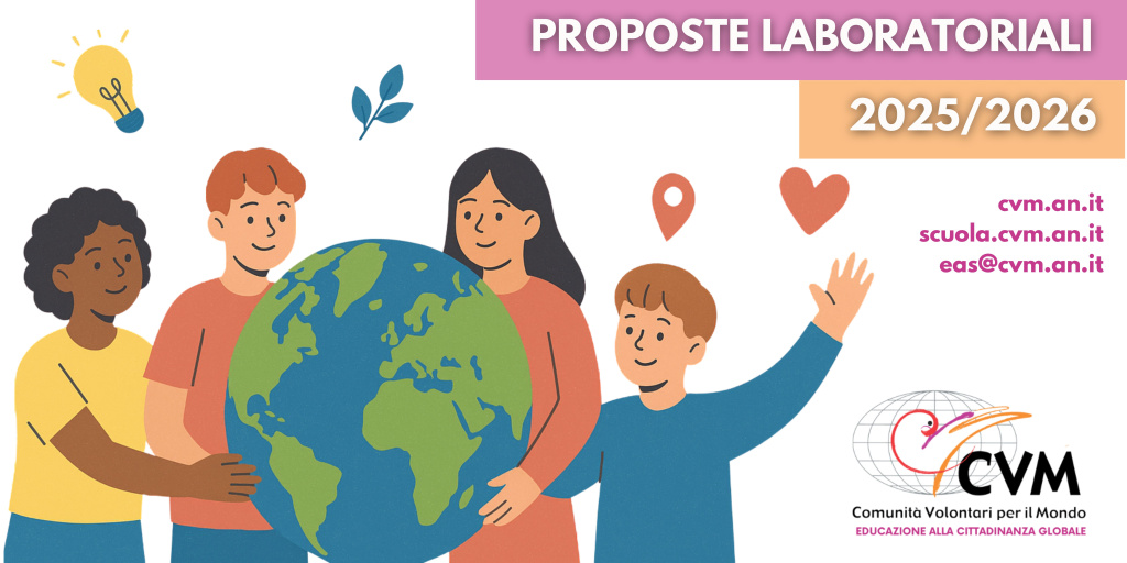 Per l’anno scolastico 2025/2026, CVM – Comunità Volontari per il Mondo ETS propone un nuovo ciclo di laboratori di Educazione alla Cittadinanza Globale, rivolti alle scuole primarie e secondarie di primo e secondo grado.
